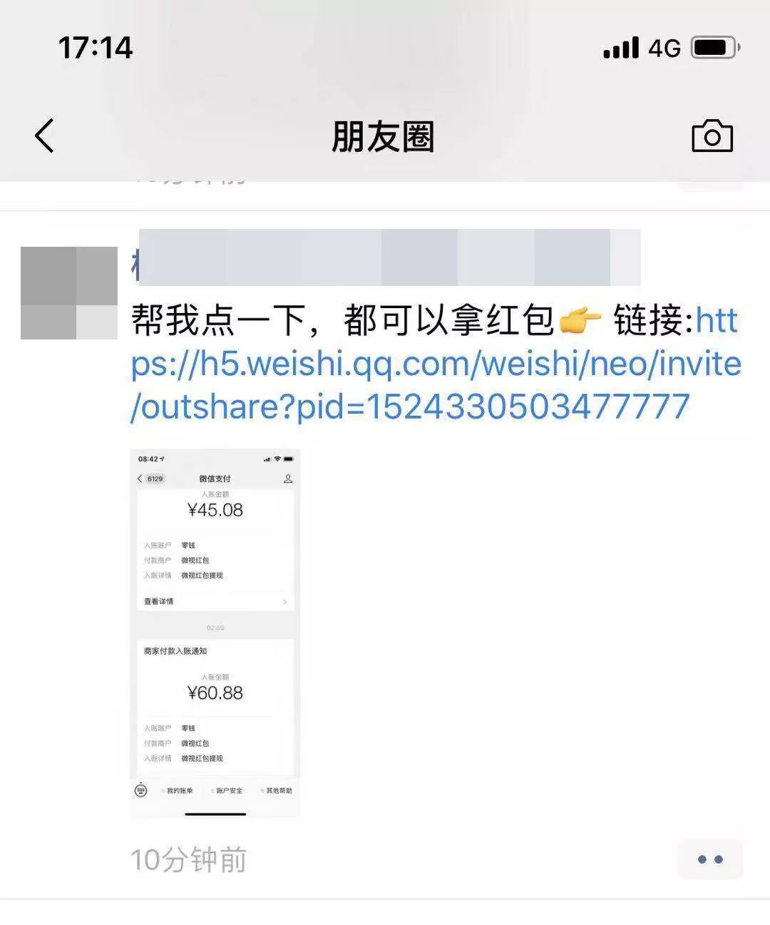 5、微视在朋友圈“撒钱”拉新被封