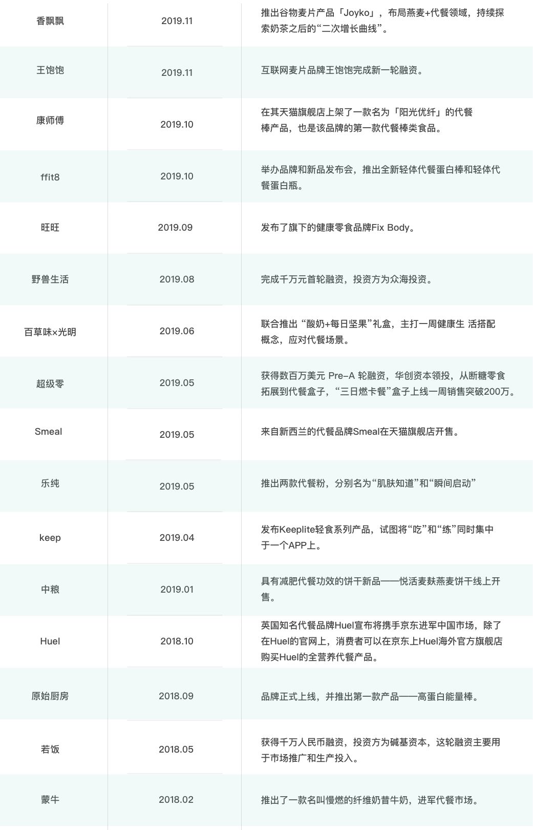 在“吃”这件事上,2019年中国更多的年轻人多了一种选择——代餐。这一年,代餐品类于中国市场集中爆发,国外代餐品牌纷纷“抢滩”,成熟食品品牌相继入局,互联网初创代餐品牌高频次“上线”。