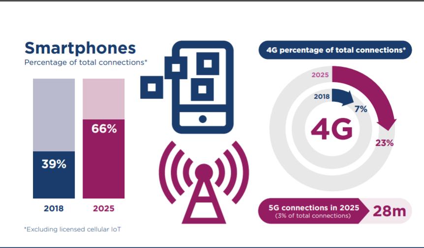 另一方面,非洲的智能手机普及率以及互联网渗透率也在逐步提升。根据全球移动通信系统协会( GSMA )数据,截至2018年,在撒哈拉以南的非洲地区,智能手机占所有移动设备的39%,预计这一数字在2025年将提升到66%。此外,这一地区44%的人口都在使用移动通信服务,GSMA 预计这一数据将在2024年达到50%,也就是6.23亿人口。