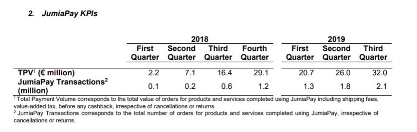 断臂止损只是一方面,另一方面,Jumia 也开始转移其业务重心。JumiaPay 是其新的发力方向。 Jumia 在其三季报中写道:“ JumiaPay 仍是我们关注的重点,我们的目标是逐渐提高 JumiaPay 的使用率,以使它在将来发展成为平台之外独立的支付渠道。”的确,在三季报中,JumiaPay 被放在了更显眼的位置。财报显示,在今年的三个季度中,与去年同期相比,JumiaPay 平台的交易金额及交易数量都有显著提升。