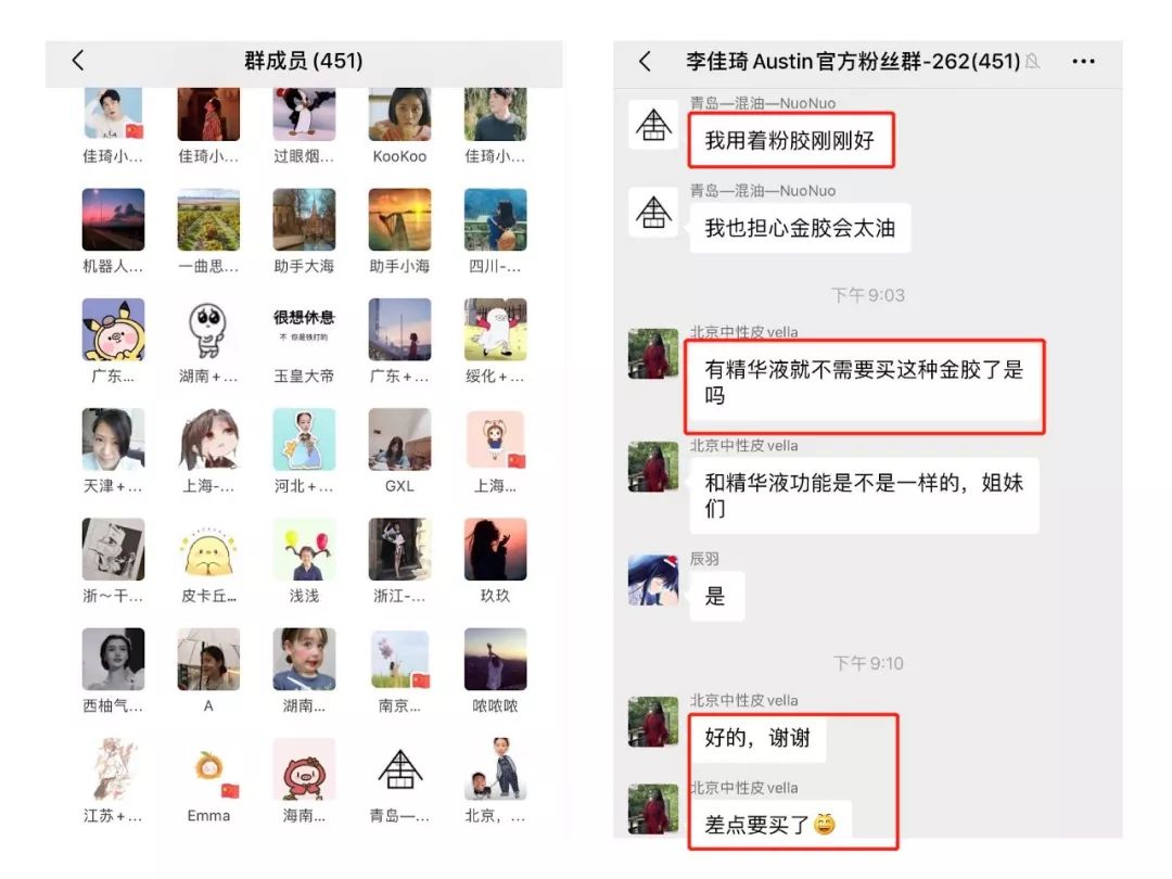 我看了两个微信群内的粉丝,绝大数都是女性,讨论交流的氛围也比较好,这会让粉丝更受群内其他用户的影响。