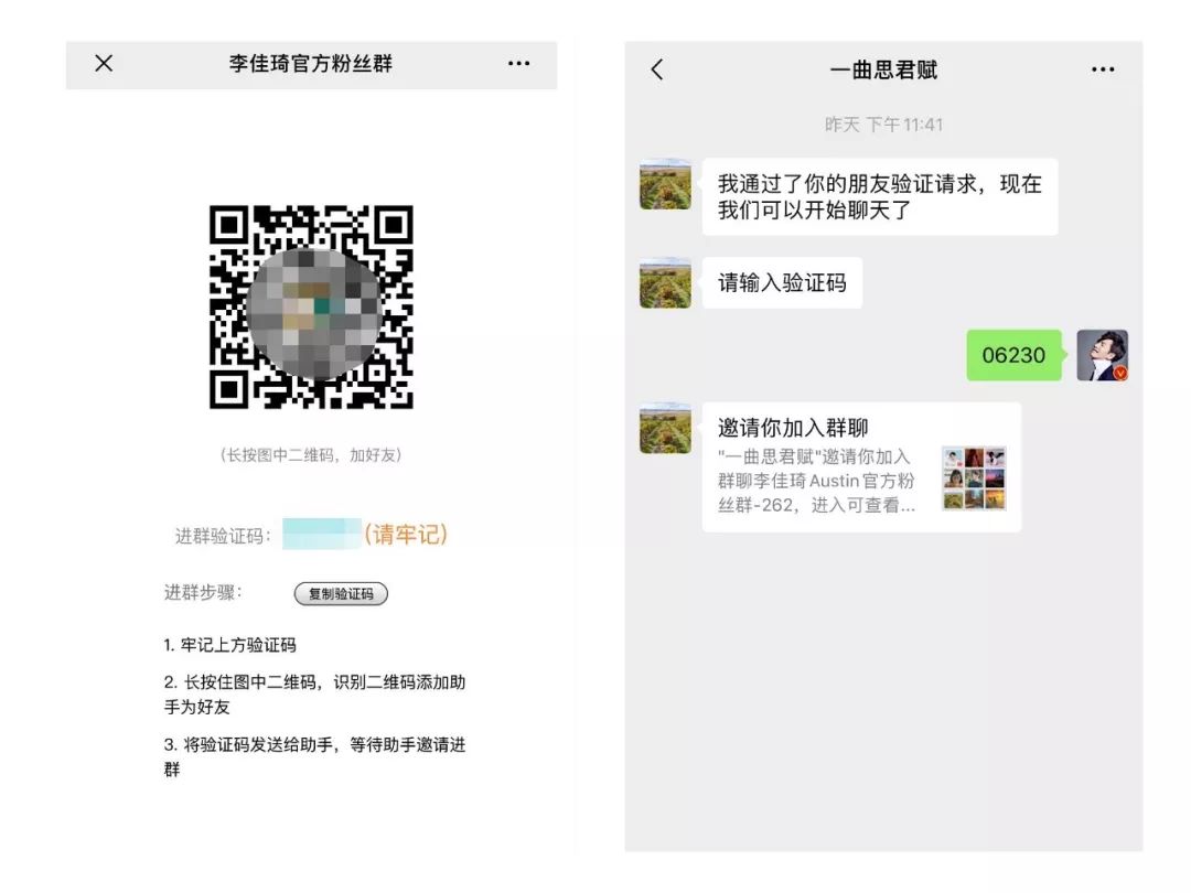 b、微信粉丝群:要想加入李佳琦的粉丝群,首先得关注公众号,再添加一个微信机器人,凭借验证码邀请进群。