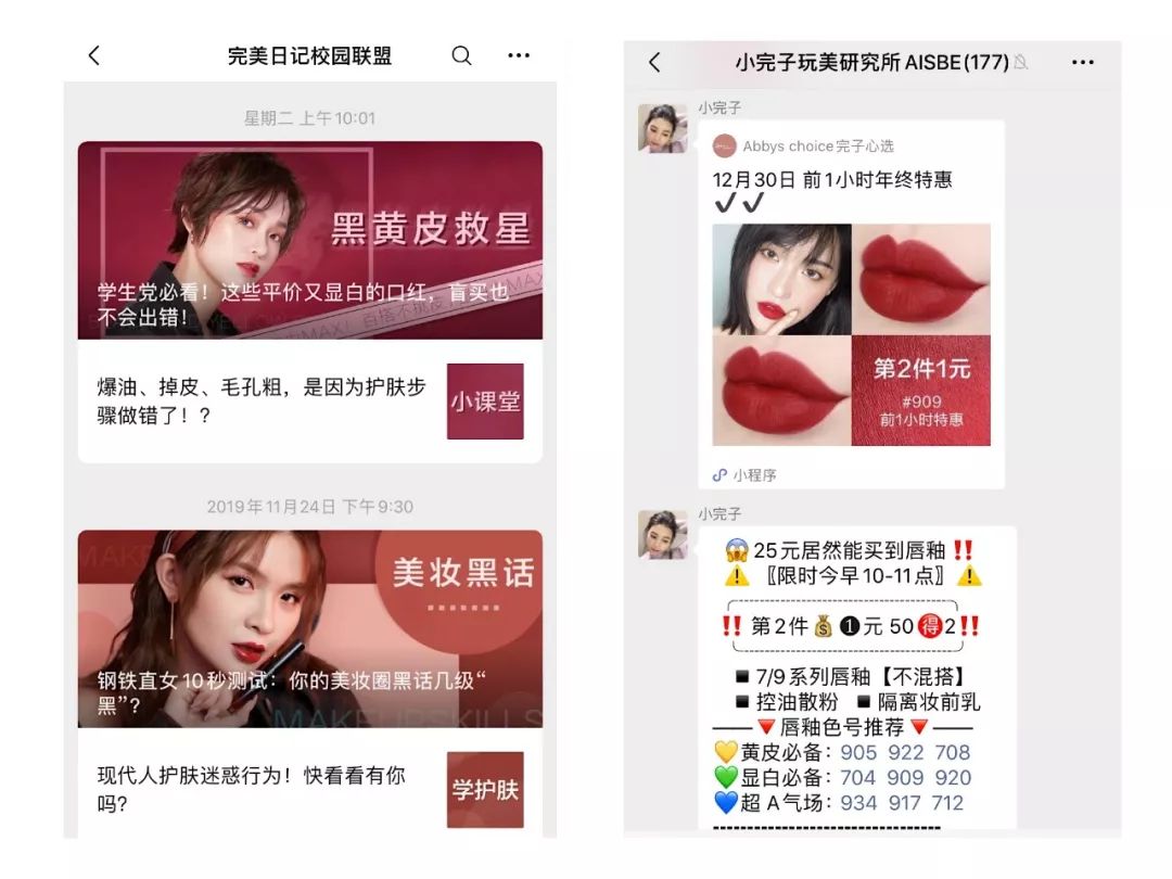 而完美日记,则需要建立多个不同类型的微信公众号矩阵,覆盖更多的用户。