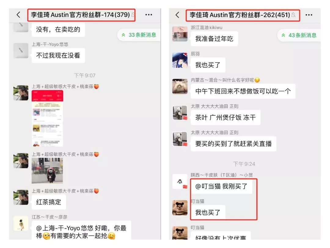 b、微信群:李佳琦的微信群核心还是用户互动和直播预告,并不直接在微信群做成交。