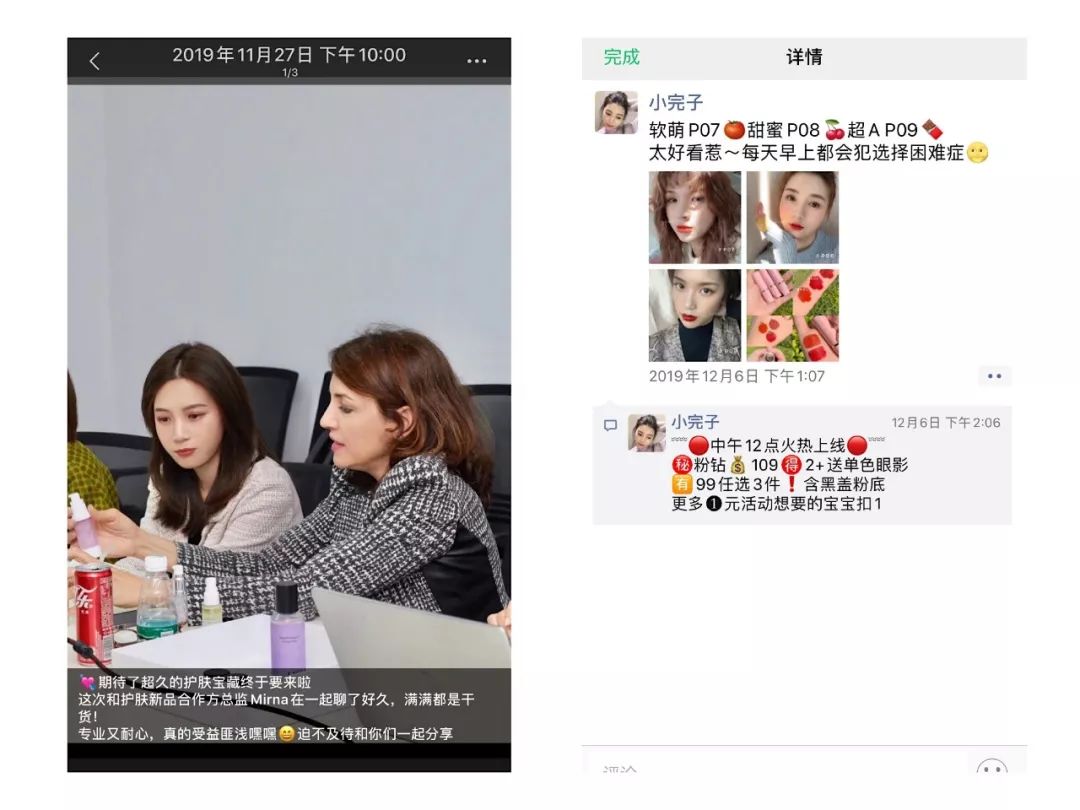 小完子的朋友圈比李佳琦助理人设号更容易拉近用户之间的距离。