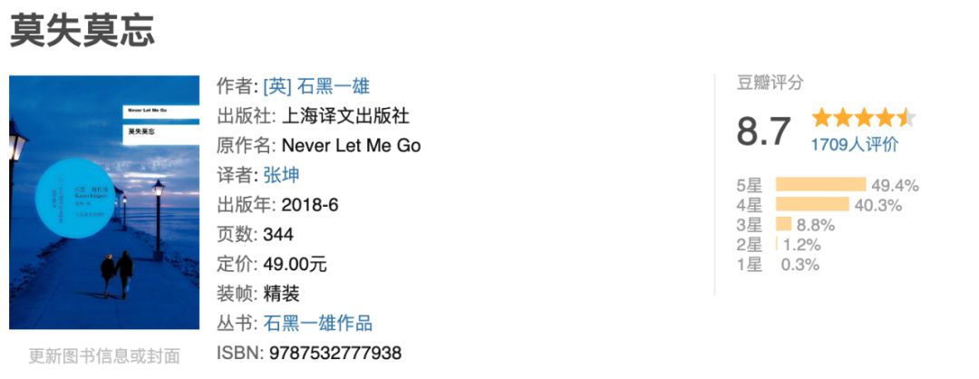 我可以说,《莫失莫忘》是我2019年读过最佳的一部小说作品,其品质在我心中完全不输作者石黑一雄的成名作《长日留痕》。
