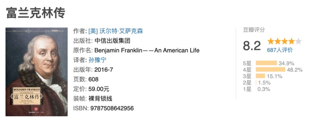 富兰克林在中年时写下了自传,这是一本我认为大部分人都应该读一读的好书。而除了这本自传之外,艾萨克森这一本也同样值得一读。