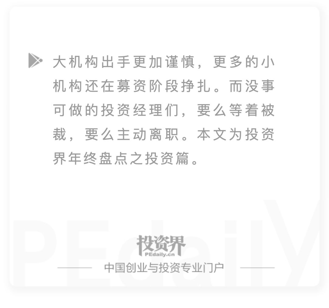 殊不知,更多的小机构仍在募资阶段挣扎。而没事可做的投资经理们,要么等着被裁,要么主动离职。