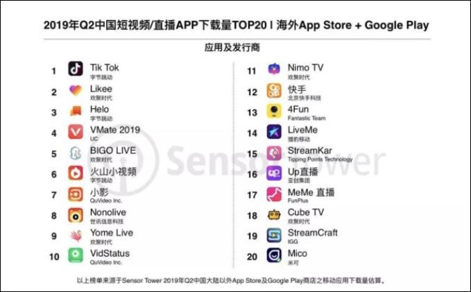 根据Sensor Tower的数据显示,TikTok海外下载量已达15亿。此外,快手海外版Kwai也多次登顶巴西应用总榜第一。YY短视频也在拓展至中东、北非、欧洲和北美地区。从目前来看,东南亚、东亚、美洲市场、中东地区市场,中国短视频玩家都已经进入。