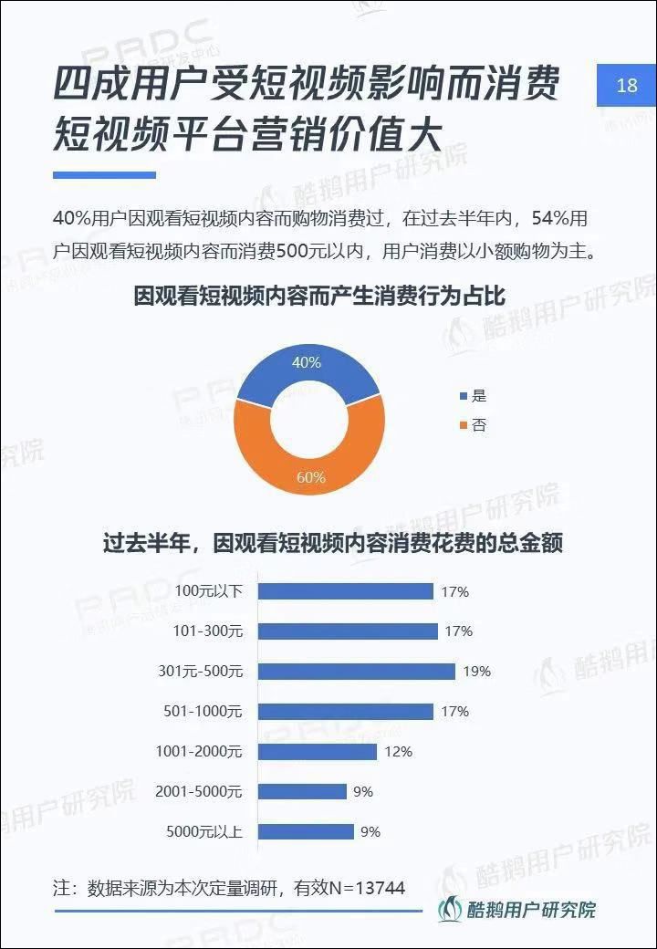 许多企业都看到了年轻人聚集的短视频平台就是增量市场,据CBNData的统计显示,仅在美妆领域,2019年线上彩妆中国货品牌的数量和消费占比均比2017年翻了将近一番。2019各大品牌主预算收紧,内容营销从“引流”到“带货”目标转移,不少中小企业也在不断压缩各种成本支出过冬,企业对低成本引流、获客的需求强烈。随着5G时代到来,更快的网速、更清晰的画面会进一步催生视频营销需求,根据酷鹅用户研究院的数据显示,四成用户受短视频影响而消费,其营销价值越来越大。