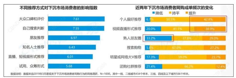 根据国家统计局的数据显示,下沉用户购买能力提升,在家居用品、母婴用品等类别网购需求高于一二线城市。而根据《下沉市场消费者网购趋势洞察2019》:下沉消费者在视频直播推荐下成单频次也在提升,也就是说,小镇青年买的更多且增势喜人。而当前短视频直播带货如火如荼的今天,各大平台都想抓住那些“剁手”更频繁的高净值用户。