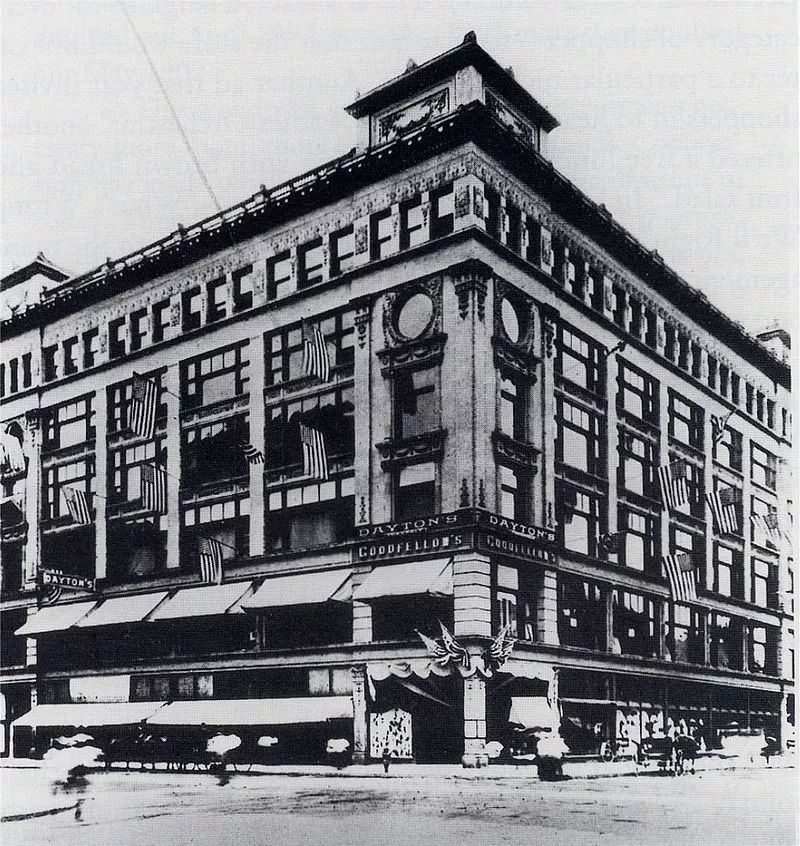 为了吸引租户,乔治在新大楼里开了一家干货商店,1903 年这家干货商店更名为代顿干货公司,7 年后更名为代顿公司,这个时期,该公司严格遵守长老会准则经营:不出售白酒,商店在周日关闭,安息日不允许进行商务旅行或广告宣传,并拒绝在赞助白酒广告的报纸上做广告。