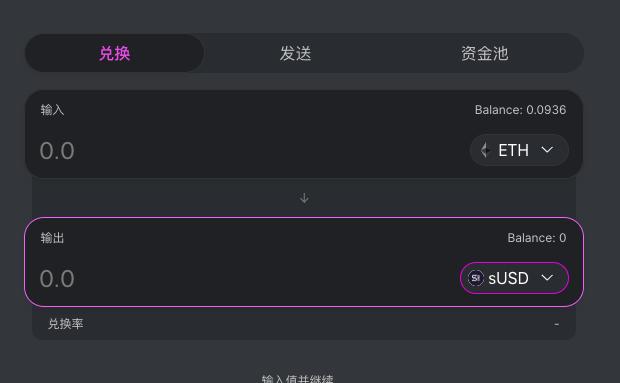 sUSD 相当于你进入 Exchange.synthetix 的筹码,你可以通过抵押 SNX 来铸造 sUSD,也可以在直接在 Uniswap 购 sUSD。