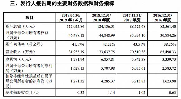 2016-2018年及2019年上半年,瑞松科技的营收分别为6.55亿元、7.05亿元、7.36亿元、3.19亿元,归属于母公司所有者净利润分别为2583.72万元、5035.61万元、5707.98万元、1629.13万元,业绩成长性一般。