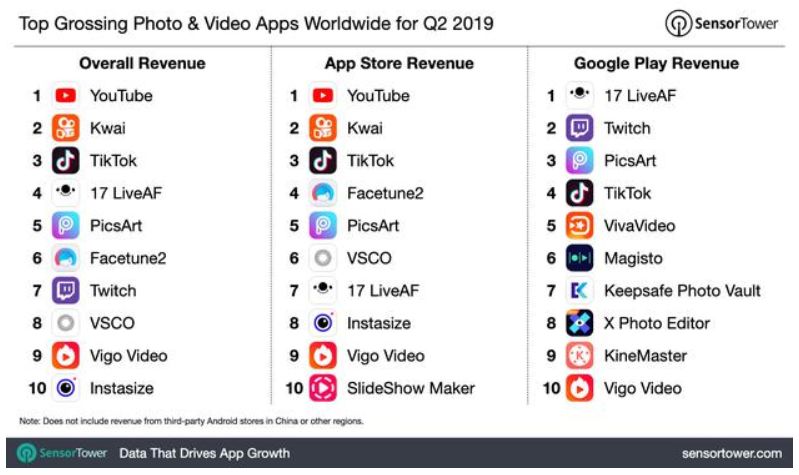 据美国科技媒体The Next Web报道,2019年2季度,快手已是全球第二赚钱的图片及视频应用。