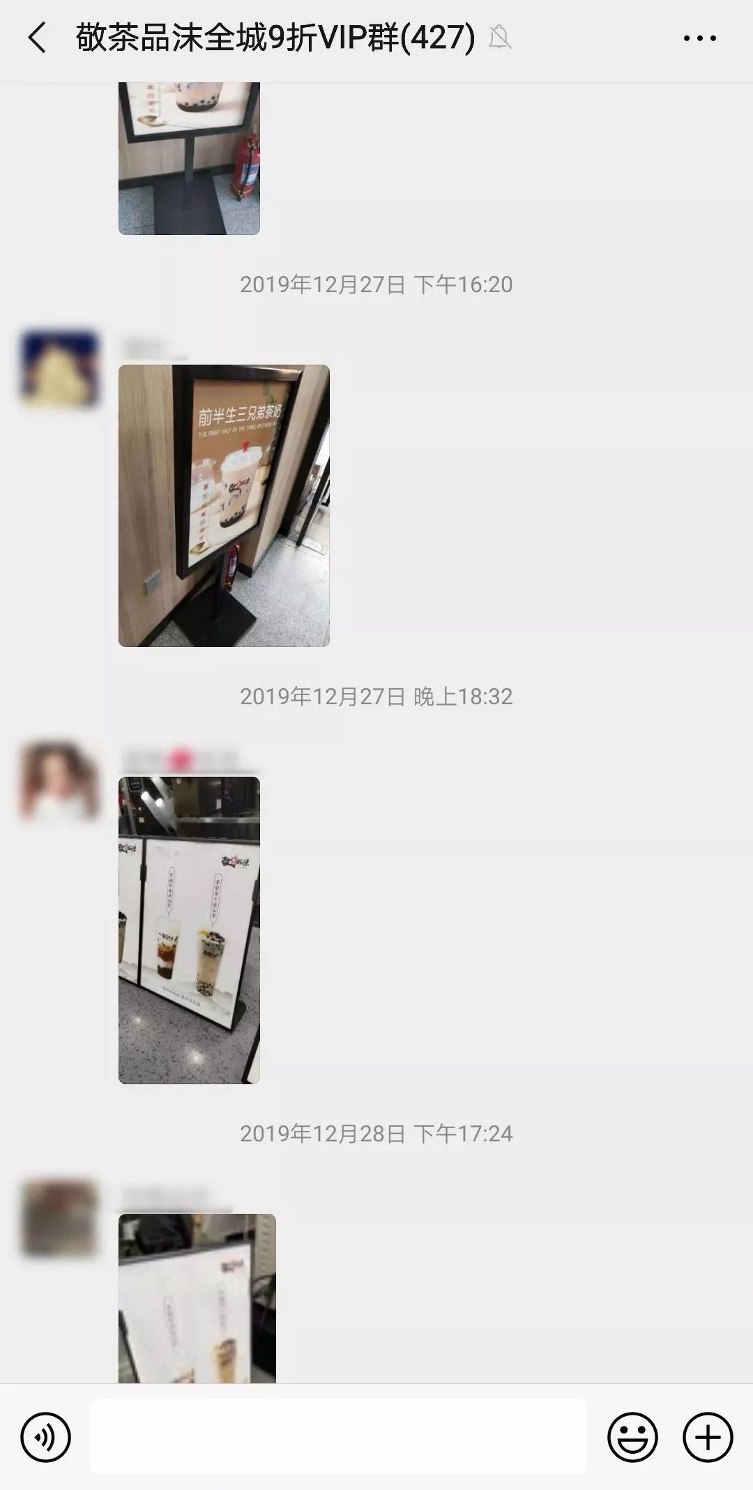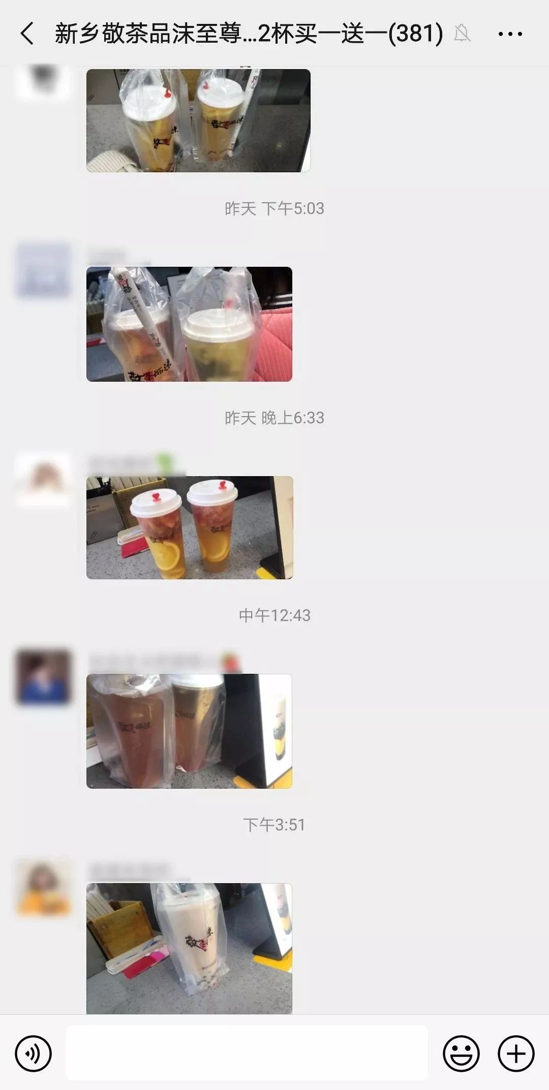 这种方法很多门店都用过,并不稀奇。敬茶品沫的心机是,将这一批顾客建立微信群,为后面做准备。