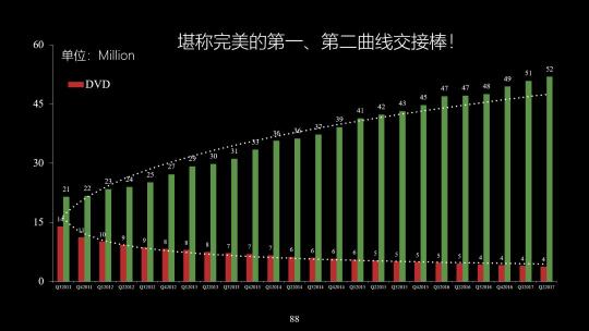 这种曲线的相交甚至不必过早,过早则会浪费了增长动力,从Netflix这两条曲线来看,实现了完美的相交,整体用户数的稳步上升。