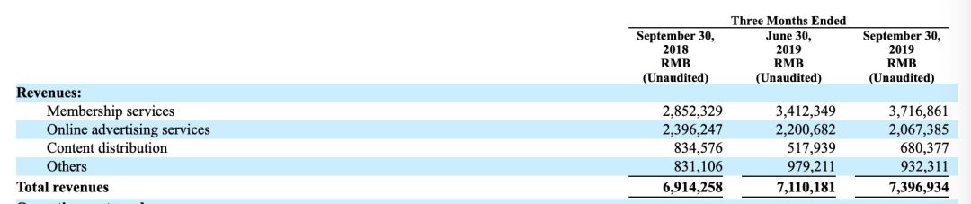 在会员订阅收入上,2019年第三季度会员收入是37亿人民币,比2018年同期的28.5亿上升29.8%,爱奇艺在财报中表示,会员收入上升源于付费订阅用户的增多,不难理解,爱奇艺的这个商业模式等同于Netflix——付费会员数增长,则收入增长。