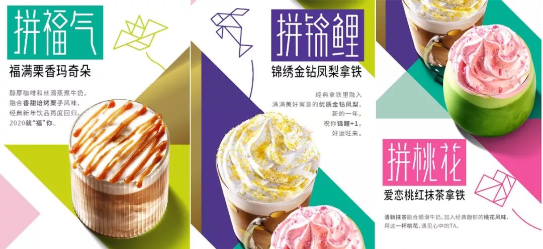 一个很中国的游戏和故事,引出星巴克新春的产品主题“拼”,“拼福气、拼锦鲤、拼桃花”等等。