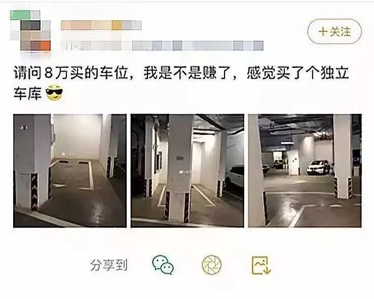 当然,不是所有的业主都这么背,最近,某微博博主对自己买到的车位就相当得意: