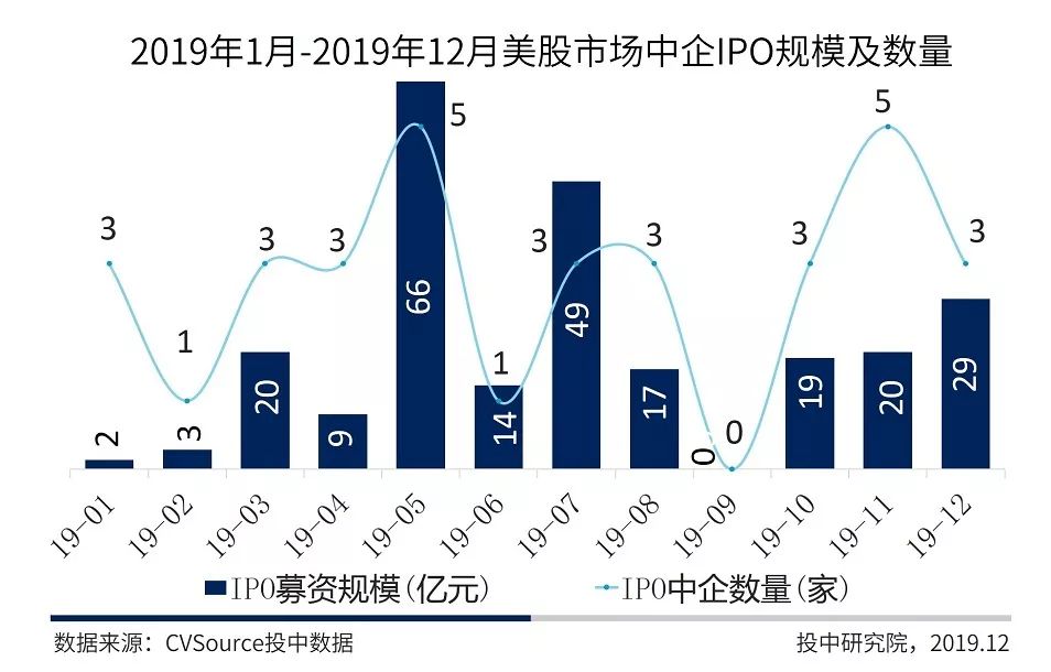 图表 10 2019年1月-2019年12月美股市场中企IPO规模及数量