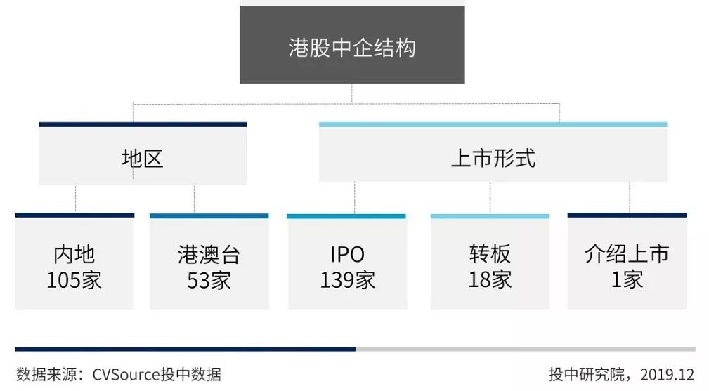 2019年,港股共计发生158起中企上市案例,其中18起为转板案例,1起介绍上市案例,其它139起全部为IPO案例。按照IPO募资规模统计,内地中企IPO占主导地位,97家内地中企占港股市场全部IPO募资规模的79%。(见图表8、图表9)