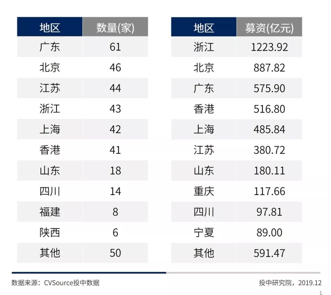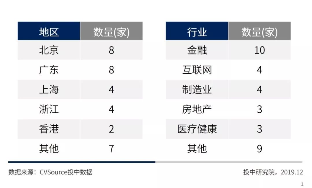 2019年,共计有373家中国企业在A股、港股以及美股成功IPO,募资总额5147亿元;IPO募资规模TOP5企业依次为阿里巴巴-SW、百威亚太、邮储银行、浙商银行、中国广核;IPO集中行业为制造业、医疗健康、金融;IPO集中地域为广东、北京、江苏、浙江、上海、香港(见图表1)