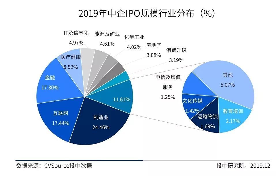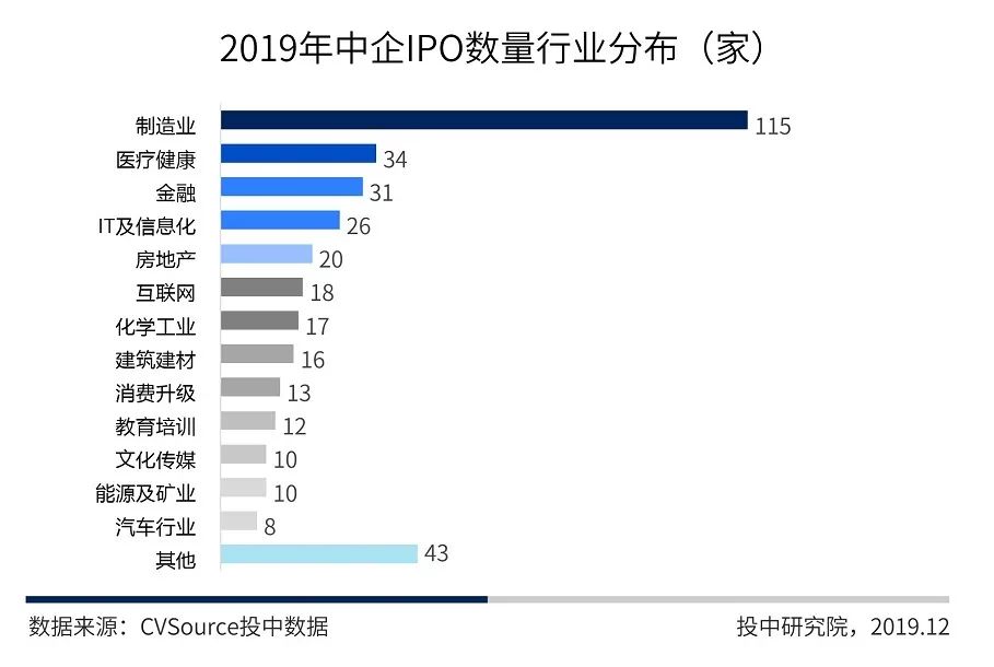 2019年,制造业股IPO数量规模双夺冠,浙江地区成为本年度IPO最吸金地区,港交所主板IPO规模稳居榜首。