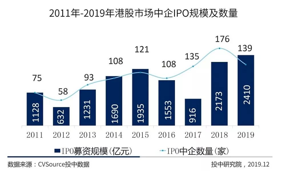 图表 6 2011年-2019年港股市场中企IPO规模及数量