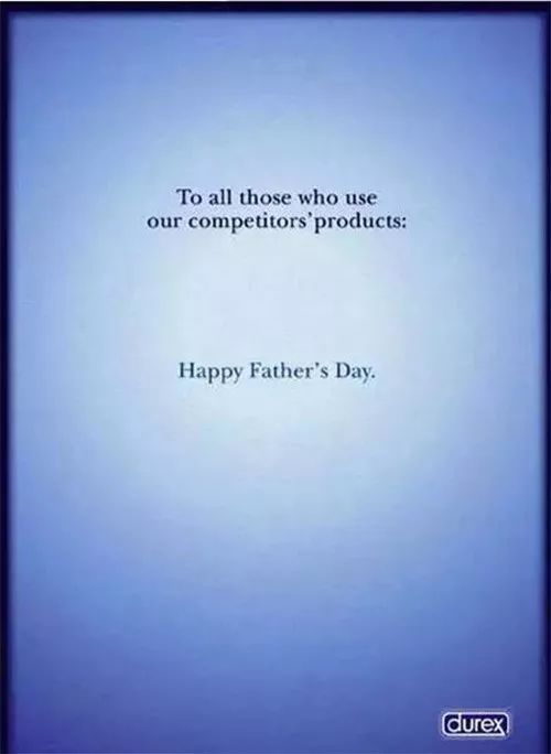 比如杜蕾斯的文案玩法就相当高明。在父亲节的时候,杜蕾斯推出一个海报: