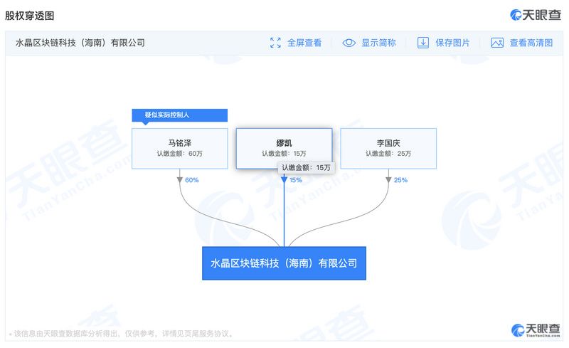 作为 CRYSTO 的原始发起人之一,缪凯是 CRYSTO 此前的境内主体——海南水晶区块链公司的三大股东之一,持股 15%,另外两位股东分别为马铭泽(持股 60%)和李国庆(25%)。值得注意的是,这家公司已于 2019 年 5 月申请简易注销。