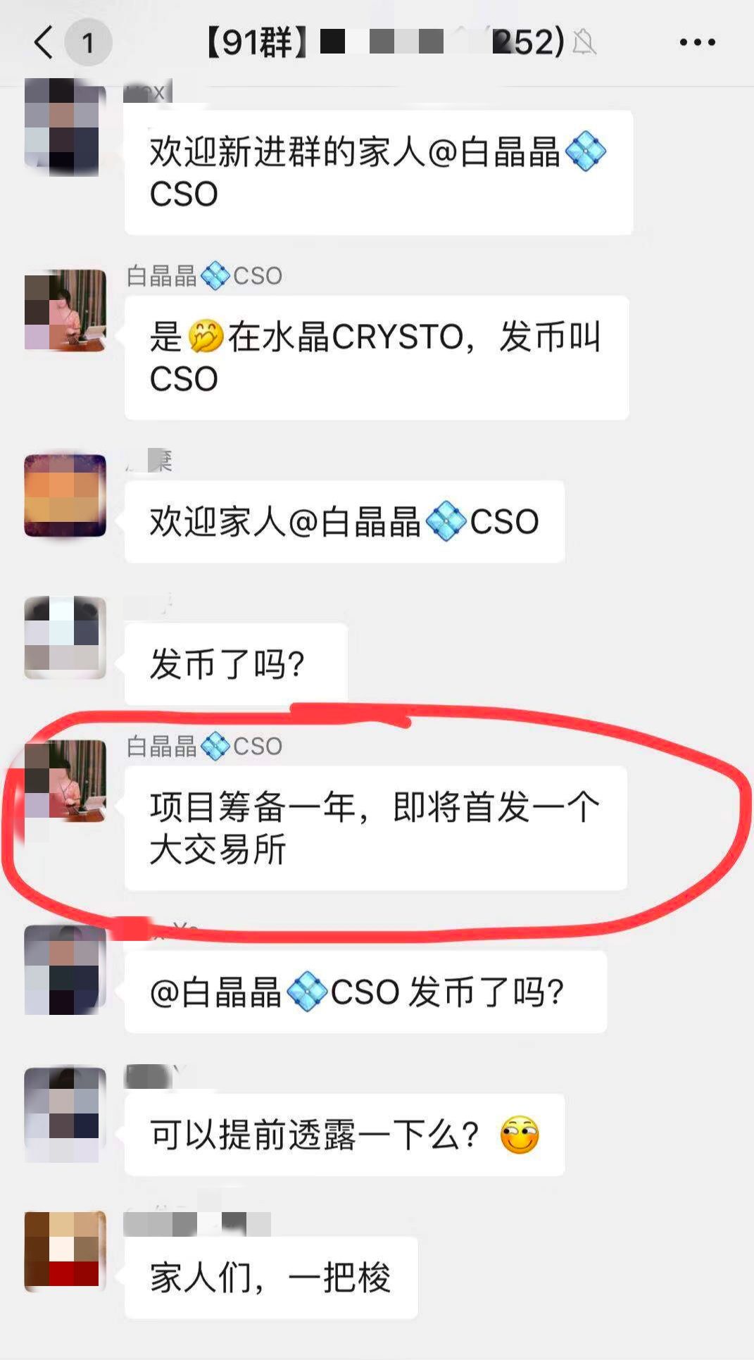谈起 CRYSTO,小周直言,最开始是被“水晶”这个名字所吸引,以为它能成为乌合小币中的”一朵清莲“,加上项目此前有大佬和机构站台,在观望半个月后,他向群主(代投)购入了不少 CSO。