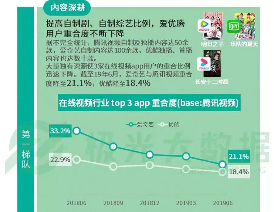 几家头部视频网站逐渐适应了合纵连横,各据天下的市场形势。极光数据Q3移动互联网报告显示,一年来,视频行业三巨头用户重合度不断下降,优爱腾逐步锁定了自己的一片江山。