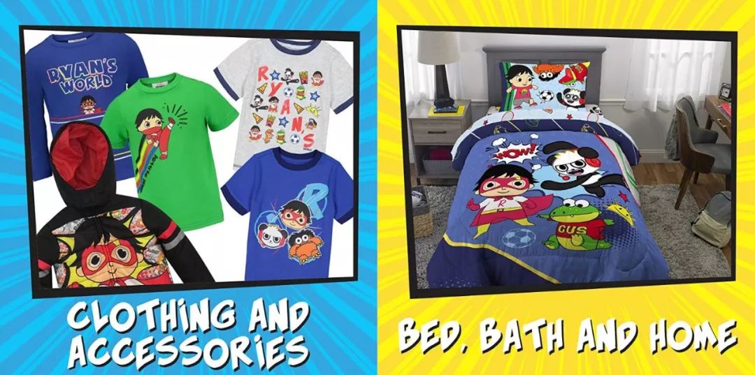 以这些形象为基础,Ryan和Pocket.Watch开始与其他厂商合作,推出了一个生活方式品牌,也叫Ryan's World。最开始Ryan's World只卖玩具,但随着前来合作的厂商越来越多,Ryan's World的产品线也越来越复杂。现在,Ryan's World旗下有童装、日用品和家居用品,甚至还有书,单品数量超过1000种。