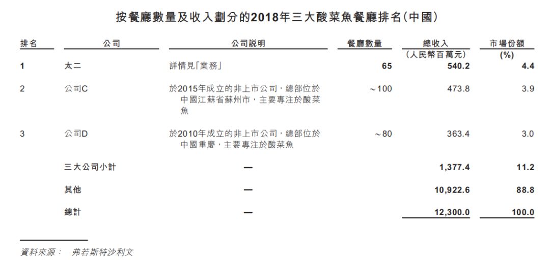 另一大核心业务“太二”尽管在酸菜鱼市场占比最高,但并未与第二名“严厨酸菜鱼”和第三名“九锅一堂”拉开差距:2018年的营收额度仅小幅领先。此外,“太二”在门店数量方面要落后于“严厨酸菜鱼”和“九锅一堂”,存在一定隐患。