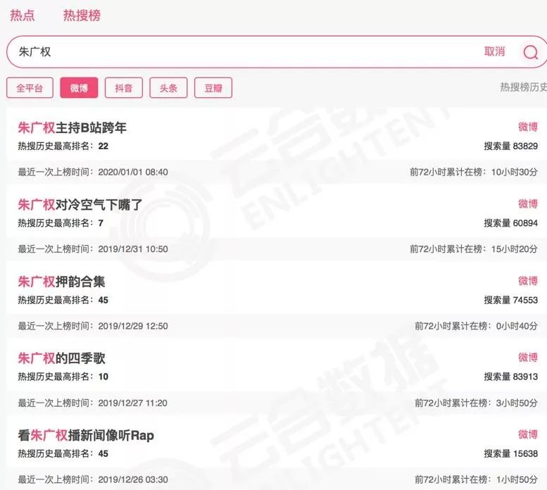 此外,与已经放弃微博的撒贝宁不同,朱广权的微博更新频繁且喜欢翻牌网友,则让他成为了最早的、“可接触”的央视“网红”。2017年,朱广权的段子合集已经在B站拥有了单条视频400万播放量的惊人成绩;2018年朱广权被加入B站“2018鬼畜全明星”,B站UP主制作的单条朱广权鬼畜rap视频播放量最高超过了800万——而在B站的超高知名度,则为他带来主持首届B站跨年晚会的机会。