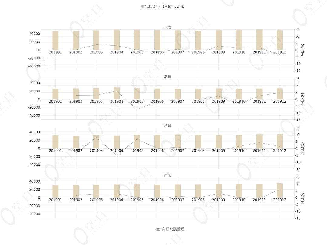 从数据上看,各个城市成交量环比均有增长,其中杭州环比增长了22.03%,涨幅最大。