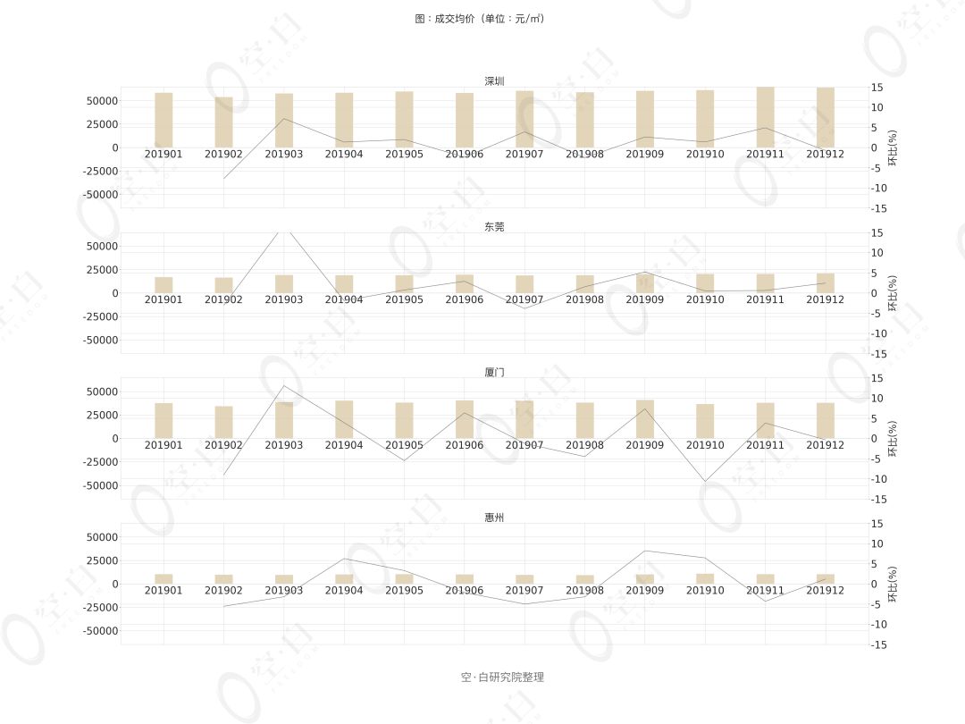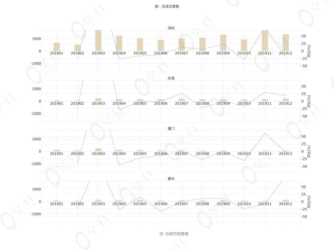 从数据上看,惠州成交量环比增长了85.19%,而厦门, 深圳市场成交量环比则有一定下滑。