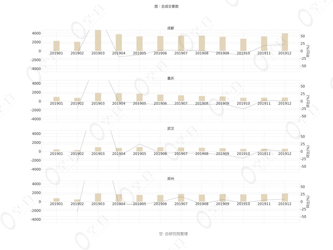 从数据上看,成都成交量环比增长了21.54%,而武汉市场成交量环比则有一定下滑。