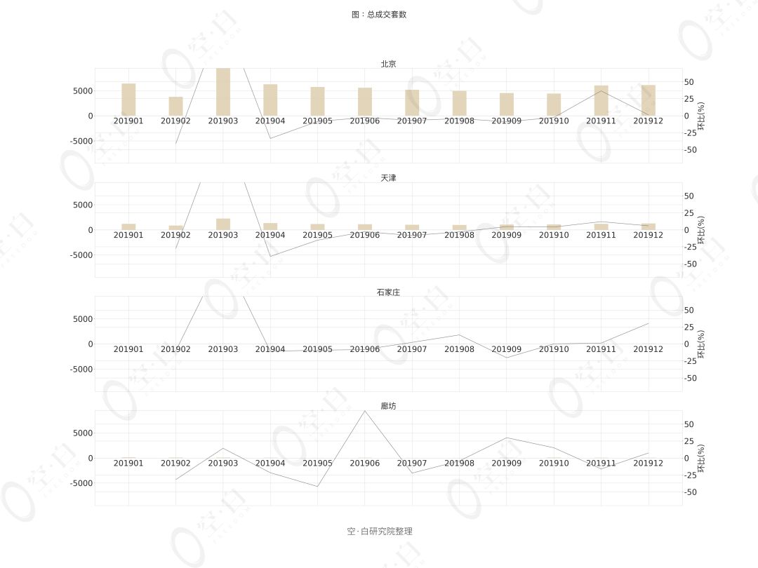 从数据上看,各个城市的成交量环比均有增长,其中石家庄环比增长了30.12%,涨幅最大。