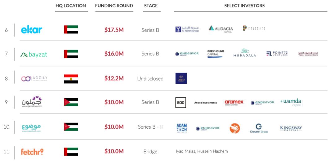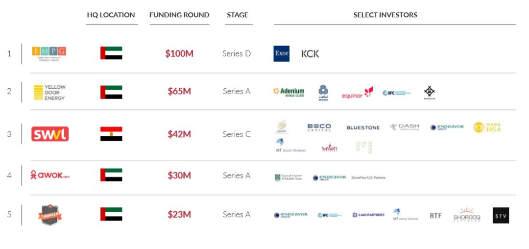 从获得的投资金额来看,阿联酋公司还是“老大”,所获融资占总额的60%。在 Top 11 的融资榜单上,阿联酋公司占了7个。