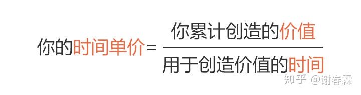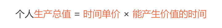 注意,这里没有用「所有时间做为分母」,因为拥有时间并不等于能产生价值,如果你只是在公司消耗八小时,而没有把你的注意力投入到工作,是不会有价值产生的,所以这里特指的时间是用于创造价值的时间。