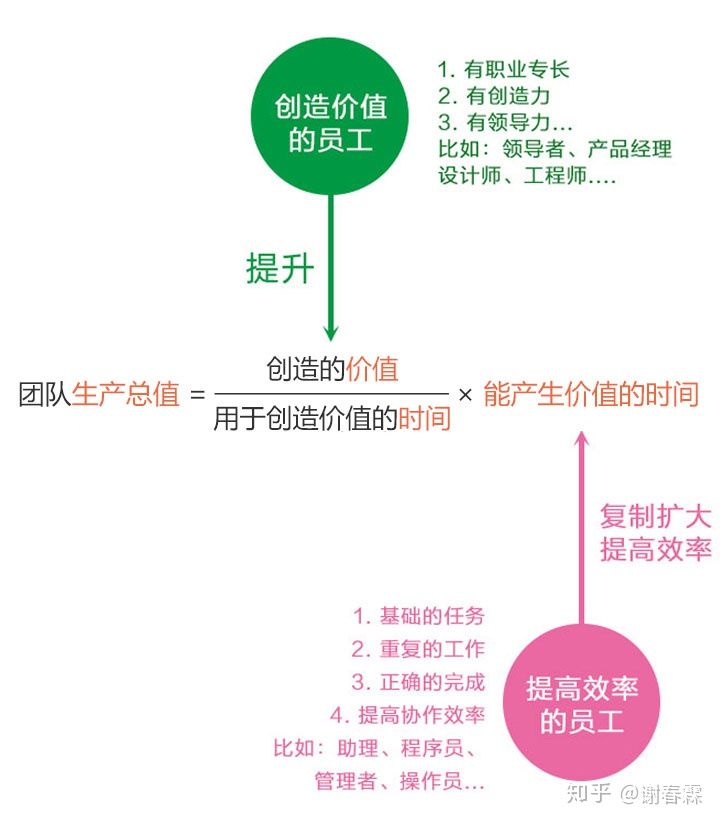 本质是个放大器,通过买入别人的时间,来提高自己的效率、提升时间单价、扩大生产规模。