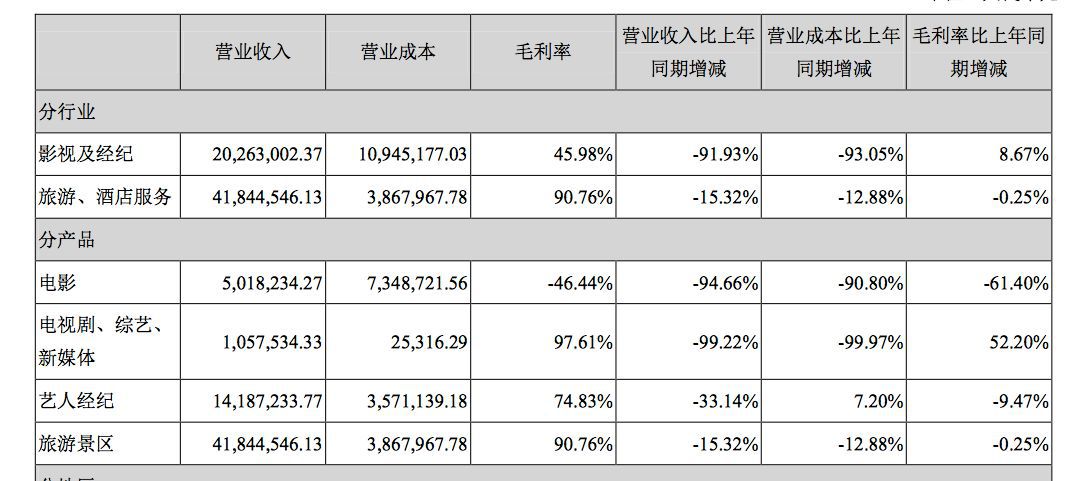北京文化上半年业绩十分惨淡。总营收6210.75万元,比去年同期减少2.41亿元,同比减少79.54%。电影业务收入仅501.82万元,同比下降幅度达94.66%。