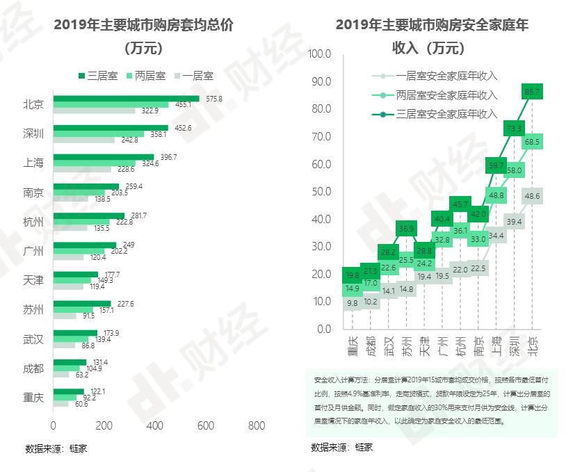 如果你想在北京买一套两居室,在不啃老、不降低生活质量的前提下,家庭年收入可能要达到86.7万元才可以。与此对应,根据《2020 居住报告》统计数据,2019年北京市两居室的成交均价为 455.1万元/套。