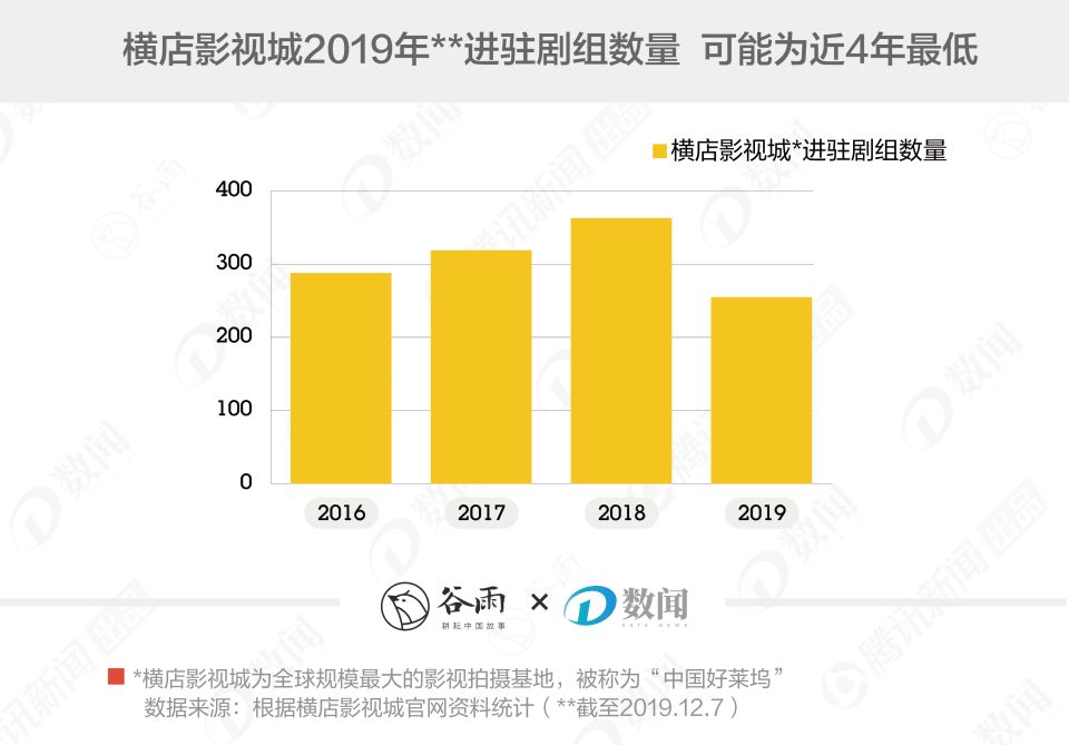 粗略统计,截至12月7日,横店影视城2019年只进驻了250余个剧组,比2018年的全年数据“缩水”超过三分之一。