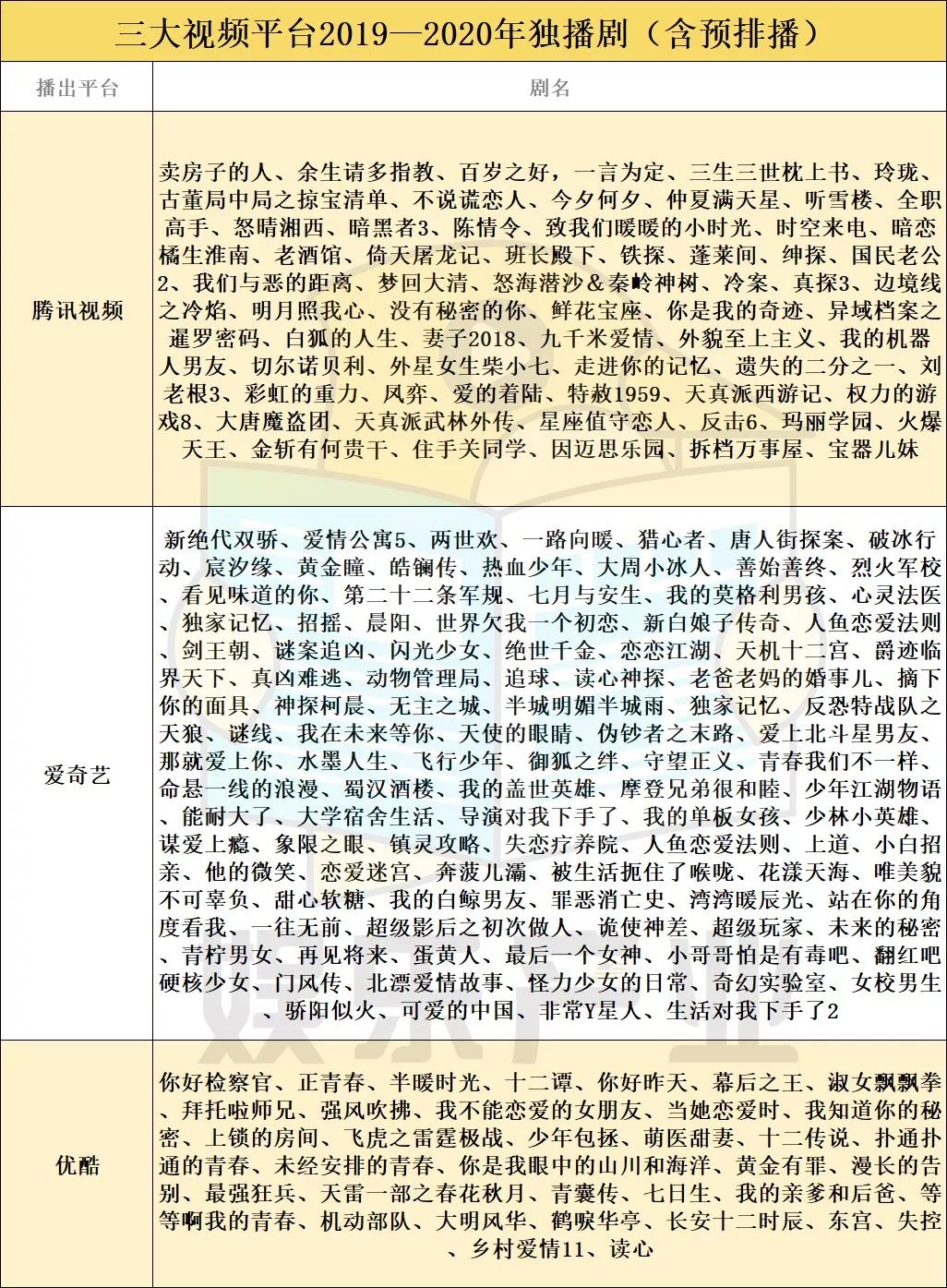 独播剧中,“优爱腾”三大视频平台依旧比较依赖自制项目。
