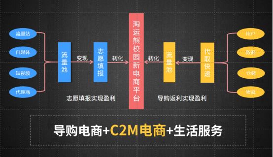 “淘运熊”平台为其他电商平台导购获取返利,将拿到的返利补贴给用户,实现免费代取快递,以此为进入校园的核心切入点,低成本引流,并黏住用户。代取快递跟高校现有的B端合作,布局了校园最后一公里物流,同时将B端现有的仓储,可以升级成为未来校园电商前置仓,为真正的校园电商做好铺垫。