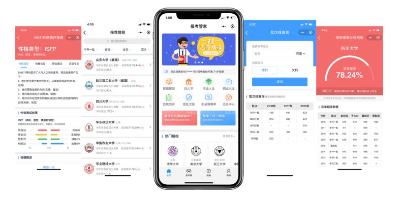 “报考管家”以新高考改革为背景,聚焦1000万准大学生,基于人工智能、大数据算法为高三考生和家长提供高考志愿填报服务,旨在考生尚未进入大学前接触到最纯粹的准大学生群体,培养用户的早期习惯。