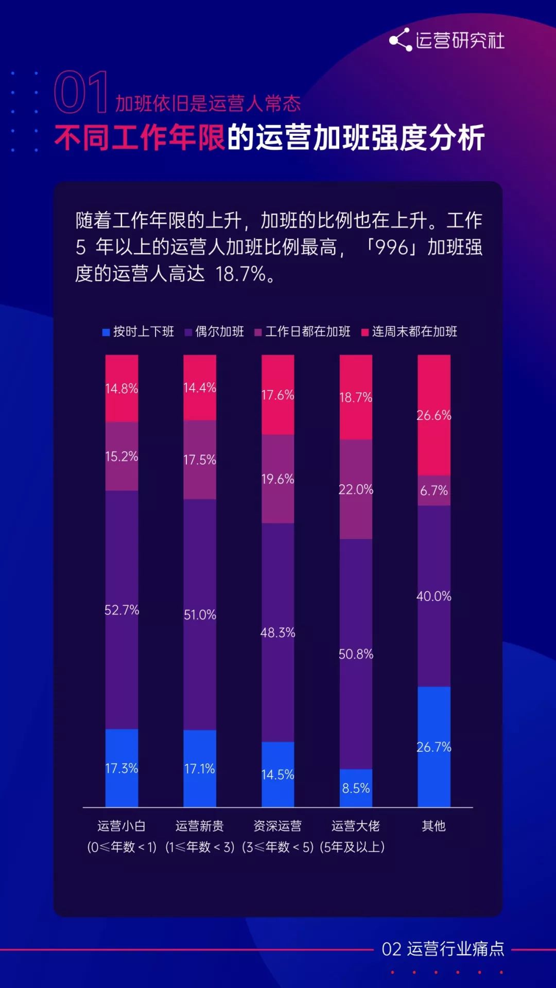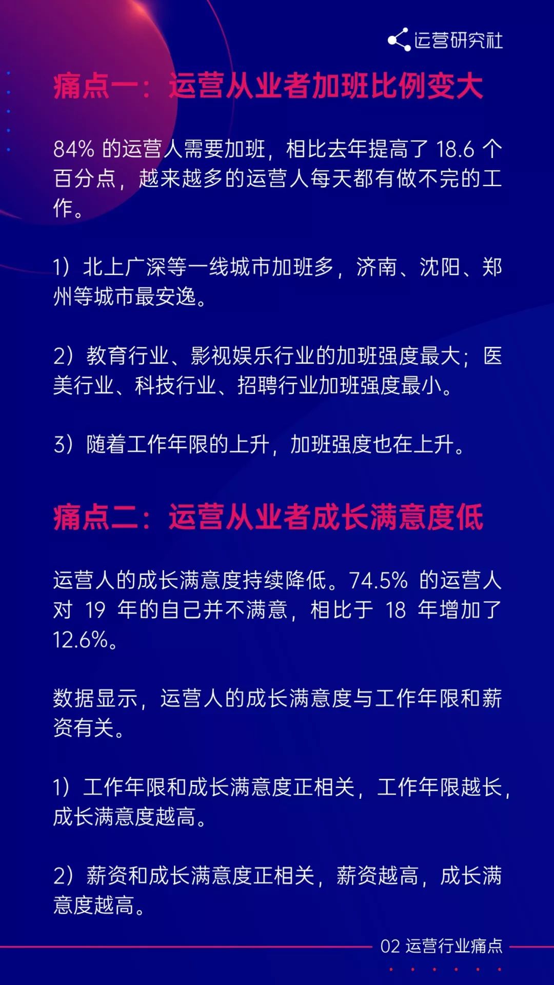 2)加班强度大、成就感低是运营人的两大生存痛点
